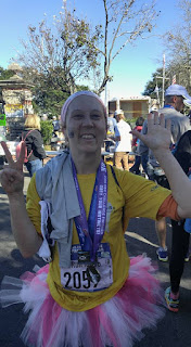 Once again, I participated in the 8k + marathon challenge. It wasn't long before I realized that might be too much. I was a little sore later and the marathon seemed a bit more of a struggle than usual. I didn't train as hard as with other marathons, so I'm sure that was part of it. The 8k was a very blustery morning. I felt good physically, but I didn't stick around to watch friends finish the later races. Duck Donuts sounded like a much better idea. But back to the race. I remember being in a perpetual state of annoyance. As I got closer to the turnaround, many faster runners were passing us. The annoying part is that those still heading to the turnaround wouldn't get out of the way. Call me weird, but I don't like to get mowed down.